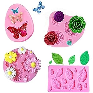 hwljxn 4 stks Siliconen bloem mallen chocolade rose mallen siliconen snoep fondant mallen rose daisy bladeren schimmel…