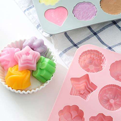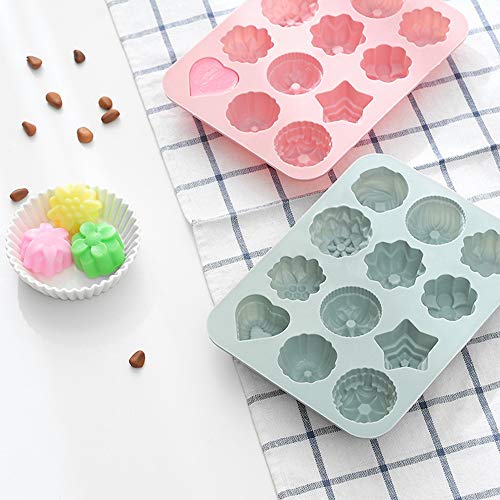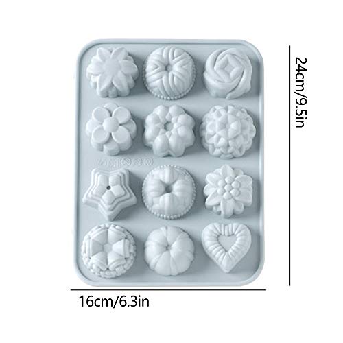 2 stuks Siliconen Mal, 12-Voudig Vele Vormen Siliconen Bakvormen, voor Het Bakken Van Taarten, Chocolade, Koekjes…