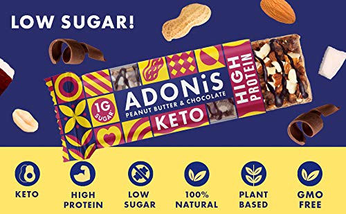 Adonis Keto Protein Bars | Pindakaas & Chocolade Snack Bars | 100% Natuurlijke Nut Snacks, Low Carb, Hoog in Eiwit…