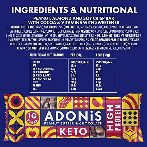 Specification: Adonis Keto Protein Bars | Pindakaas & Chocolade Snack Bars | 100% Natuurlijke Nut Snacks, Low Carb, Hoog in Eiwit…