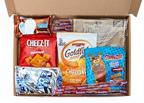 Dit pakket bevat de Amerikaanse essentials die je niet wil missen in je kast! Daarnaast is dit het perfecte brievenbuscadeau voor iedereen die van goede snacks houdt, de Amerikaanse supermarkt enorm mist of gewoon iets nieuws wil proberen. Inhoud box: Rice crispy treats Cheez-it Gold fish cheddar Scooby-doo cinnamon crackers Pop-Tarts Twizzlers Popcorn Smaken en varianten kunnen per box verschillen.