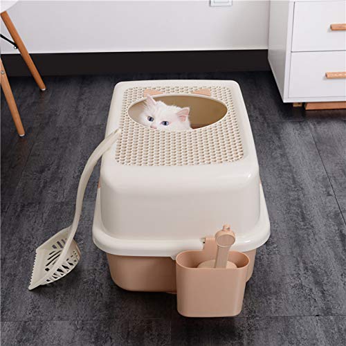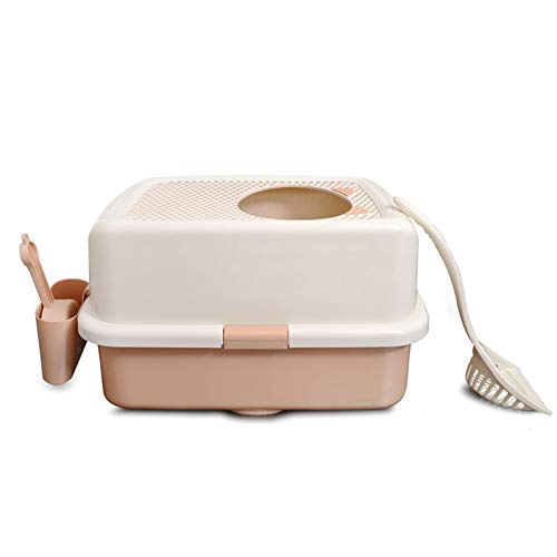 VEILIGHEIDSONTWERP: Kattenbak met schep Een volledig gesloten ontwerp is aangenomen om een stille omgeving met weinig licht te creëren, die angst kan elimineren. Het is zeer geschikt voor katten die graag privé zijn. Het kan ook externe spatten voorkomen en de problemen bij het schoonmaken verminderen; het kan geuren goed isoleren. Smaak, geen lekkage van urine of zand. Het algehele ontwerp is grotachtig en volgt de aard van de kat om gaten te boren, waardoor uw huisdier een meer gevoel van ve