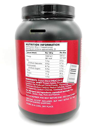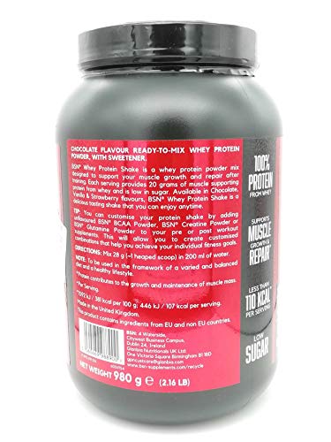 BSN Whey Protein Shake Powder Chocolate 980g – Extreem hoog eiwitgehalte (70%), belachelijk laag in suiker (5,9…