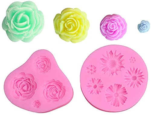 hwljxn 4 stks Siliconen bloem mallen chocolade rose mallen siliconen snoep fondant mallen rose daisy bladeren schimmel…