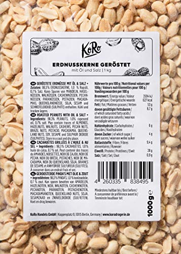 Specification: KoRo – Geroosterde en gezouten pindanoten 1kg – Klassiek geroosterde snack met olie en zout in een voordeelverpakking