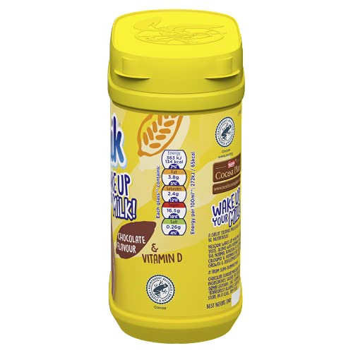BRON VAN VOEDINGSSTOFFEN: Milkshakemix met chocoladesmaak met toegevoegde vitamines en mineralen als aanvulling op de melk zelf.