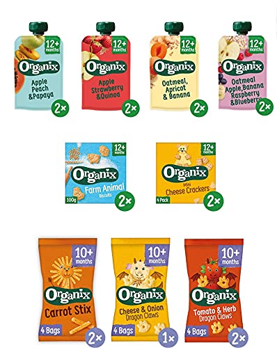 Organix Biologische Peuter Snack Box (10+/12+mnd) – 20 st. – Verantwoorde tussendoortjes, snacks en knijpfruit– Geen…